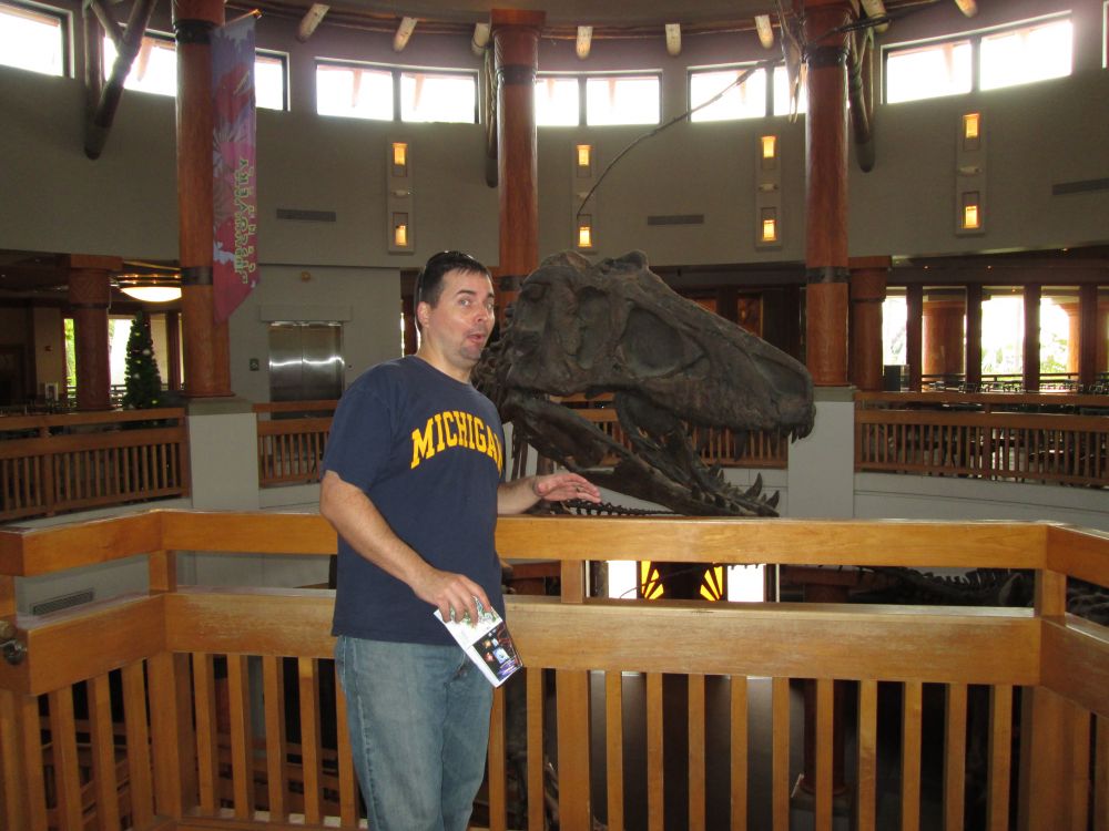 Kelley as a dinosaur