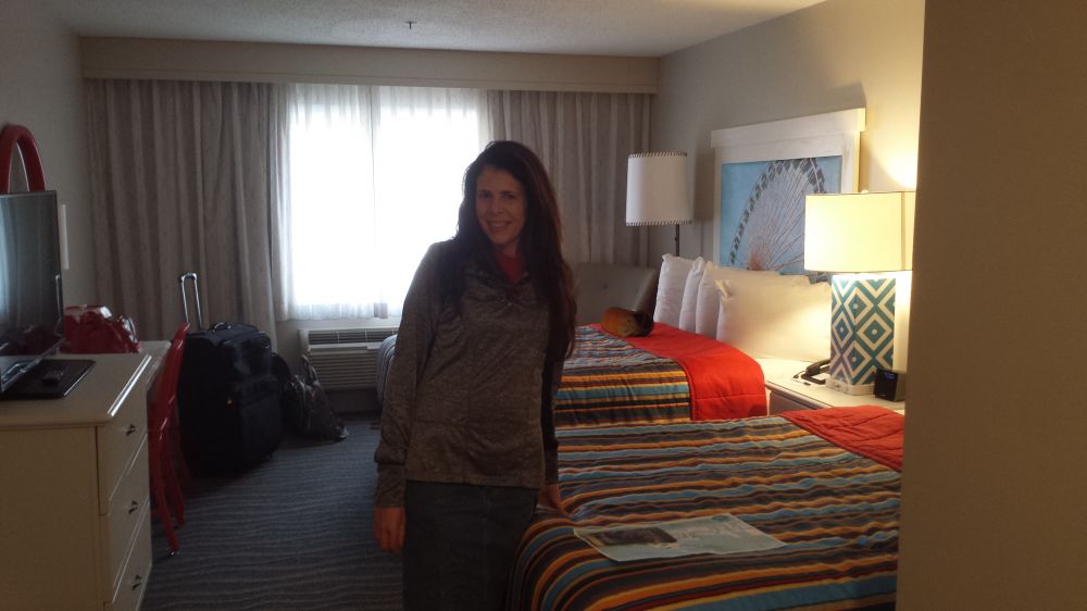 Kelley stands in our Cedar Point Hotel Breakers room - we had to get 2 queen beds, no king size left I guess.