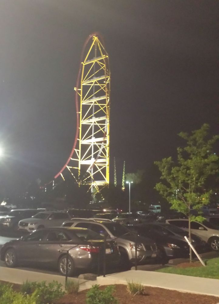 The view of the Top Thrill Dragster from the hotel all lit up after dark. Pretty sweet.