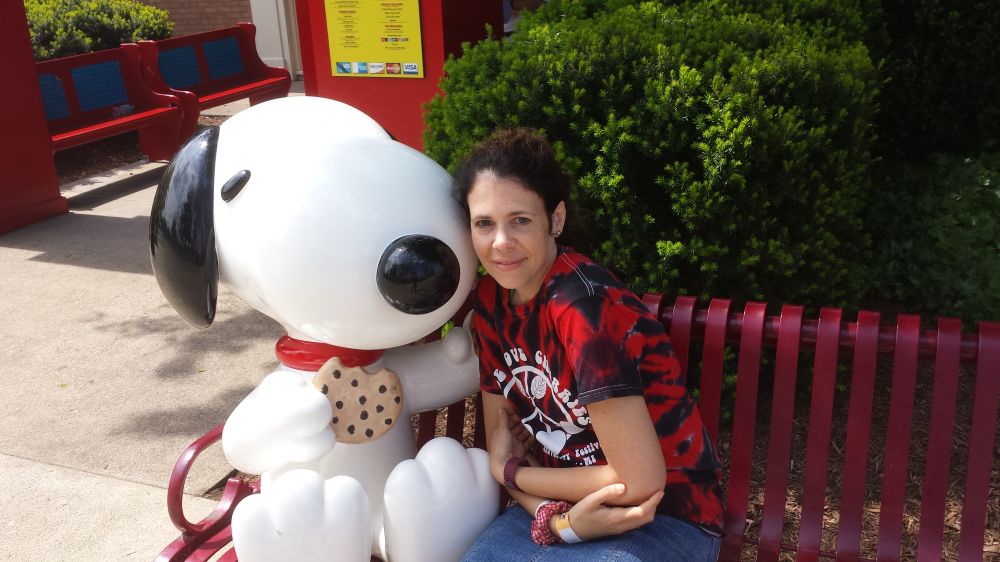 Kelley hangs out with Snoopy at Cedar Point