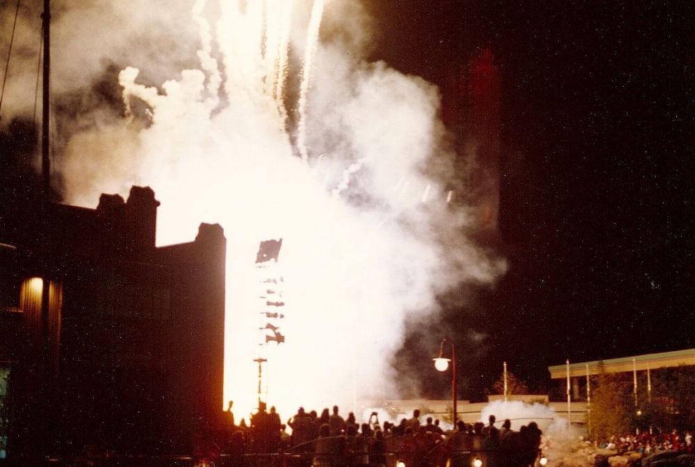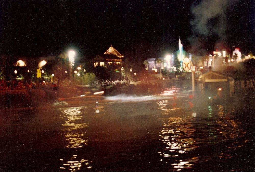At night at one of the Disney properties, they had a special effects speedboat show and it was really cool. This picture does not do it justice.
