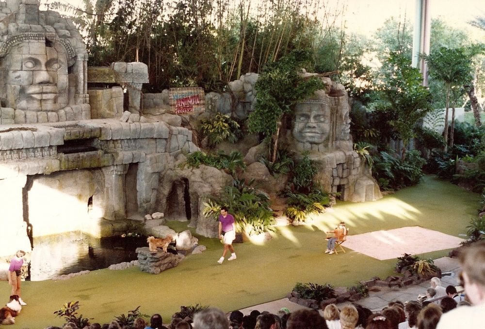 This is the seal show at Busch Gardens and for whatever reason, the helpers are dressed like cavemen and cavewomen.